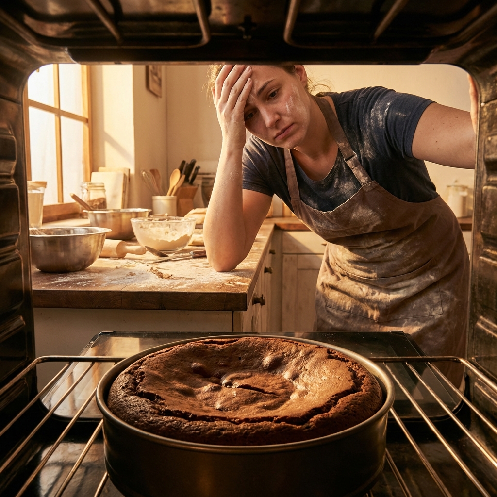 Ciasto nie piecze się w środku najczęściej z powodu zbyt wysokiej temperatury piekarnika. Zewnętrzna warstwa ciasta ścina się i brązowieje zbyt szybko, tworząc twardą skorupę. Działa ona jak izolator, który uniemożliwia gorącemu powietrzu dotarcie do surowego wnętrza. Efekt to spalony wierzch i płynny środek.